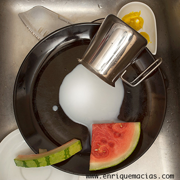 Set up to the sink in a manner like when you are ready to clean up your sink. Looking at the sink with the morning light, I got the idea to create some images.